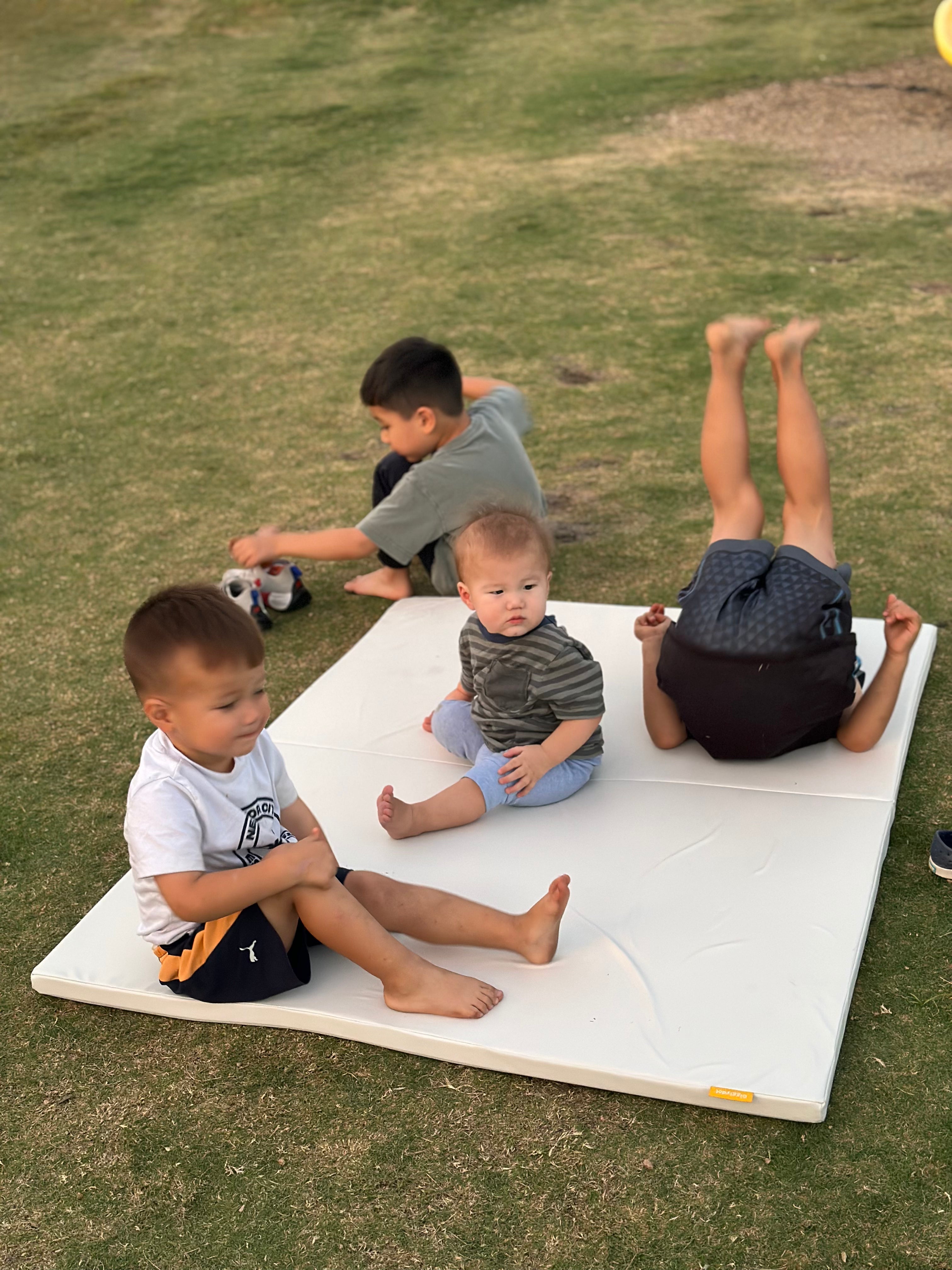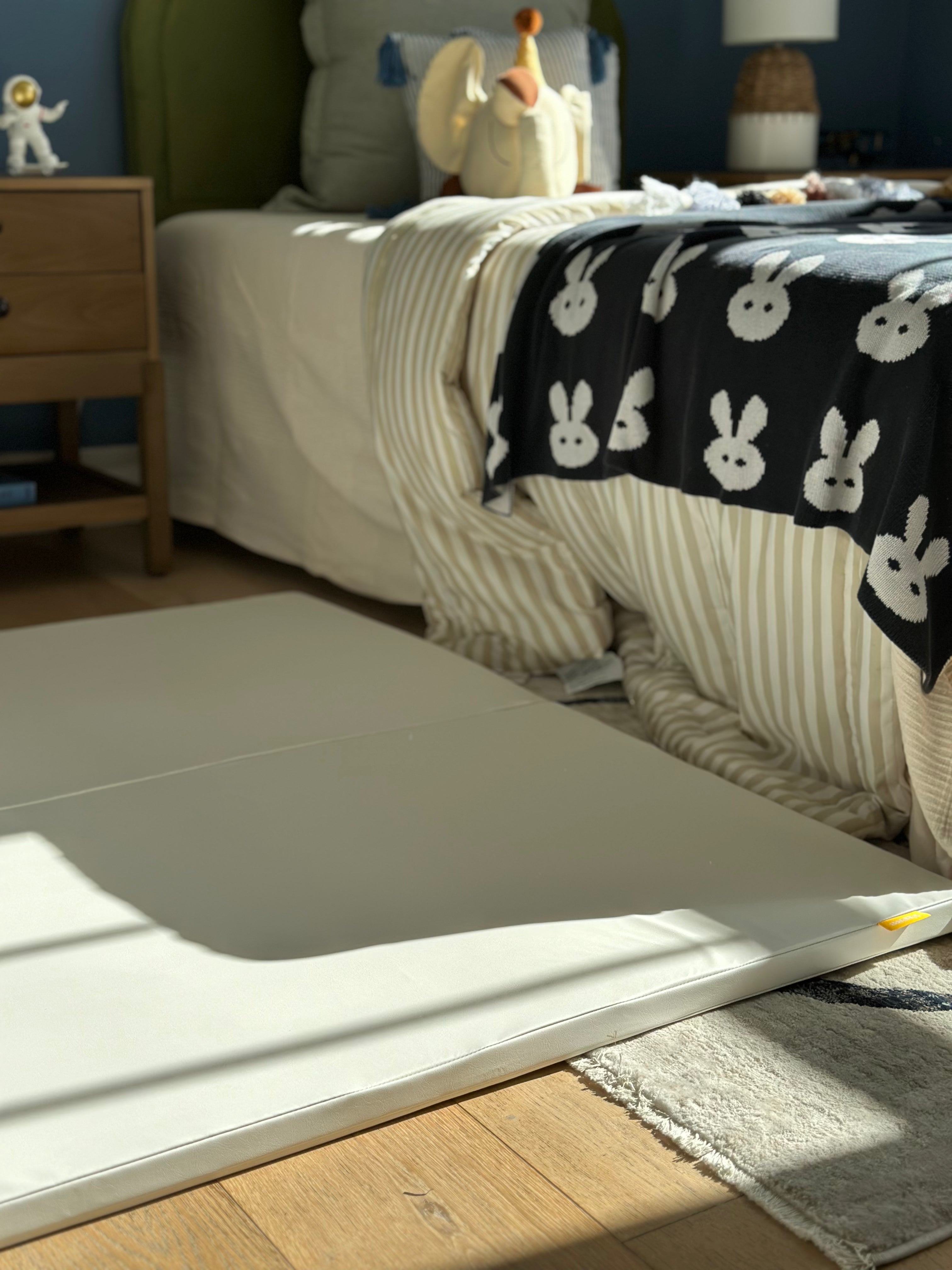 0+ months — a soft, supportive space for tummy time and early milestones.